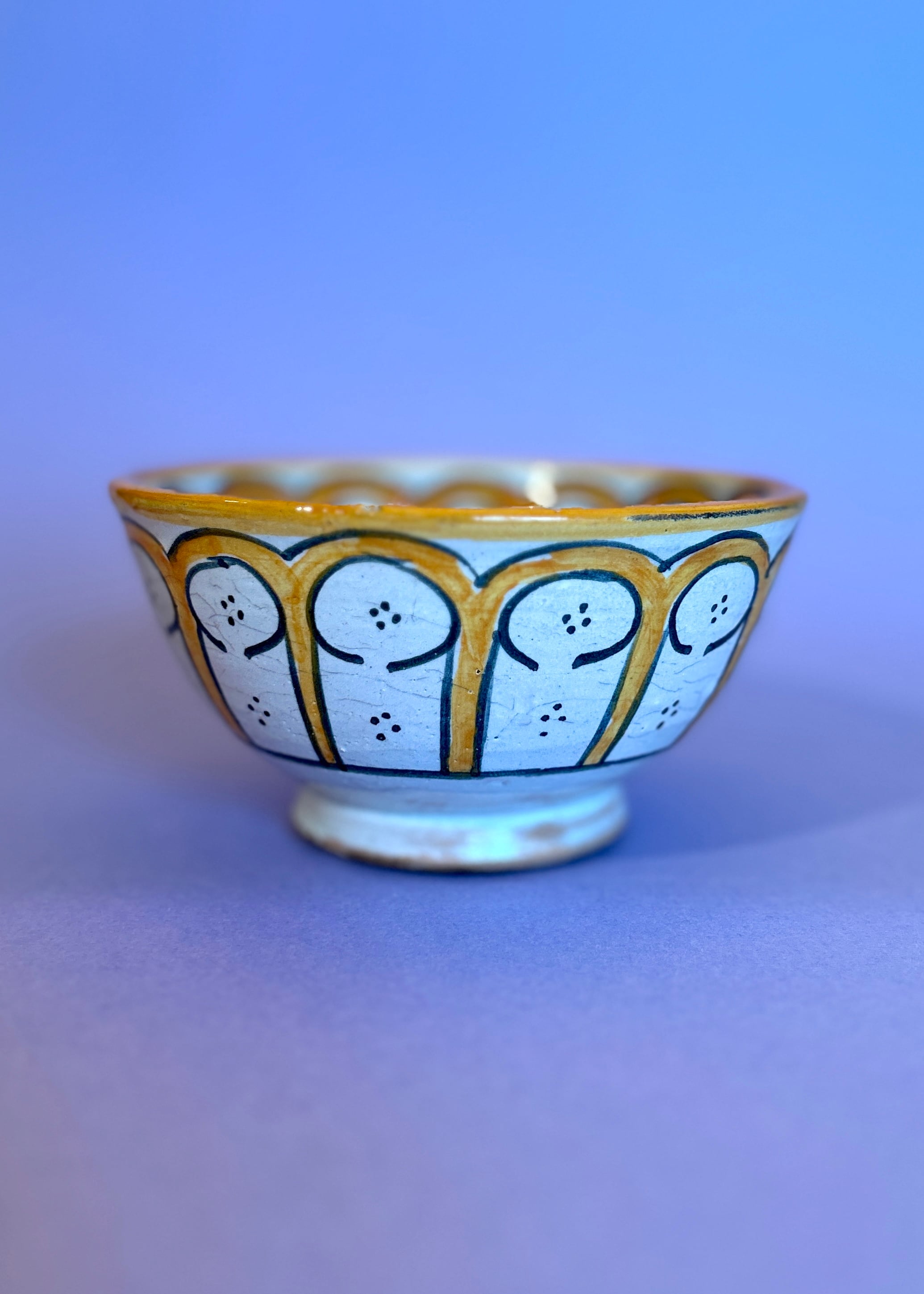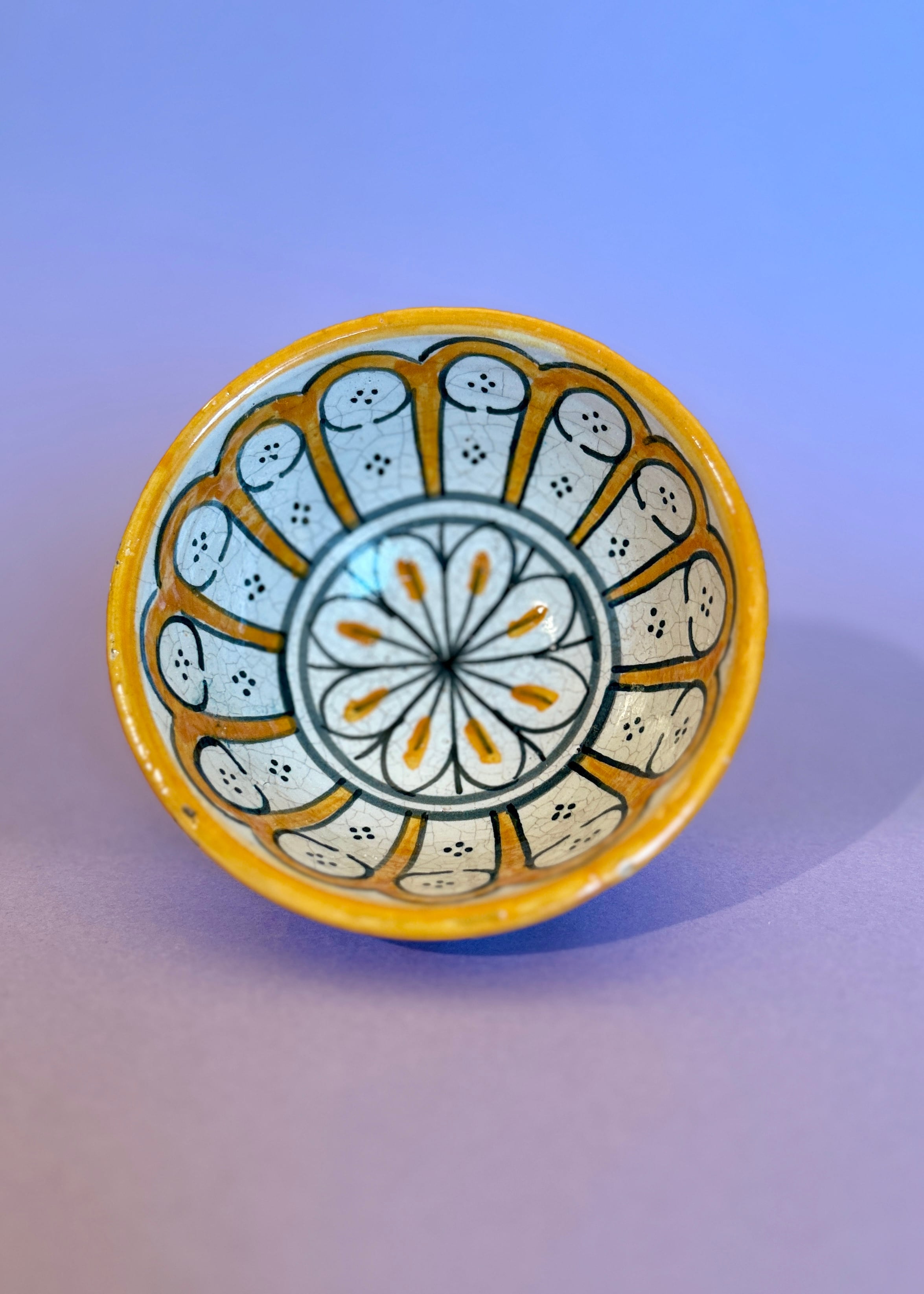 イエローの花モチーフと幾何学模様の組み合わせが唯一無二のフェズ陶器。