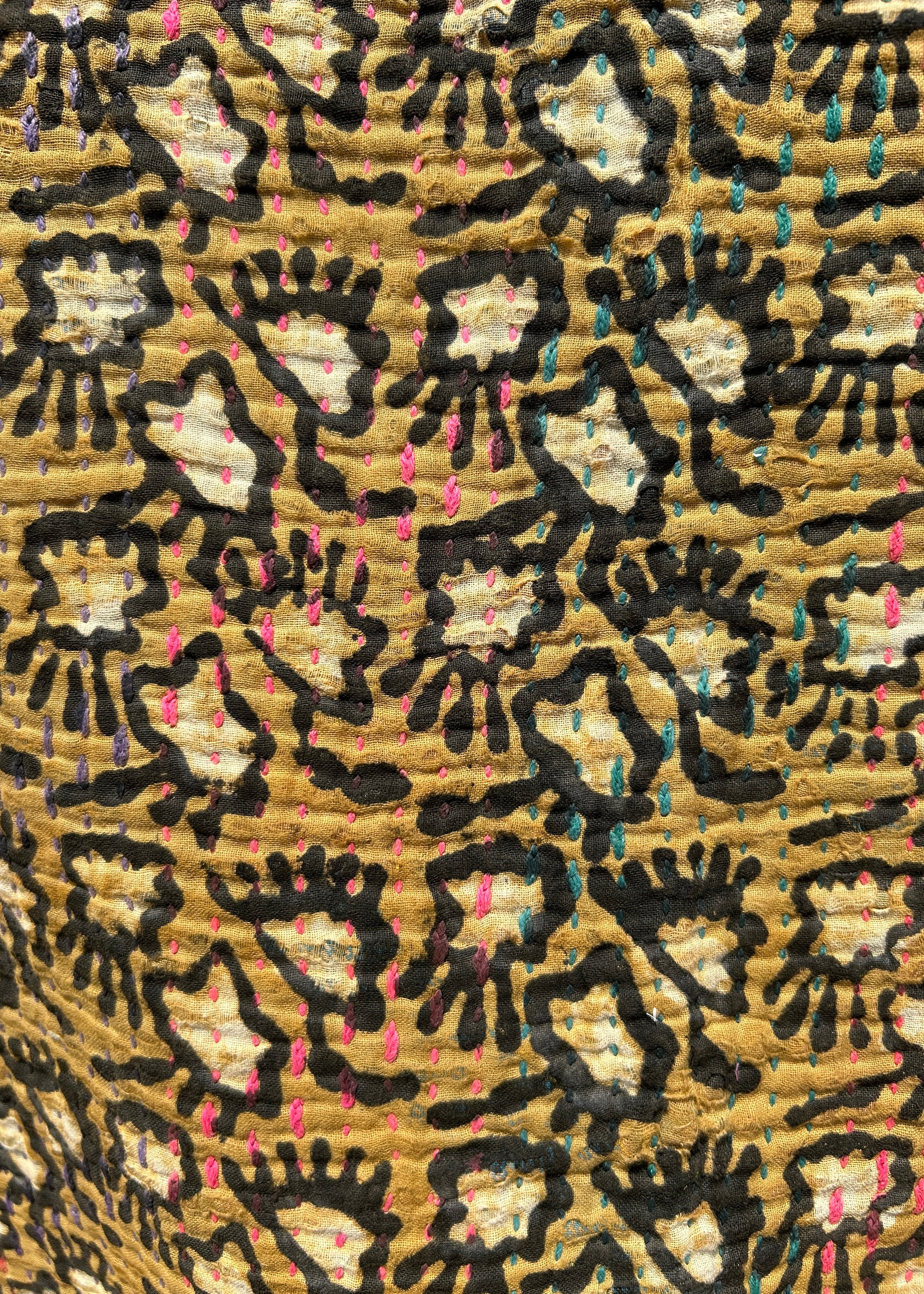 「カンタ」とはパッチを当てた布を意味し、東インドベンガル地方を中心に500年前から伝わる刺し子刺繍布。