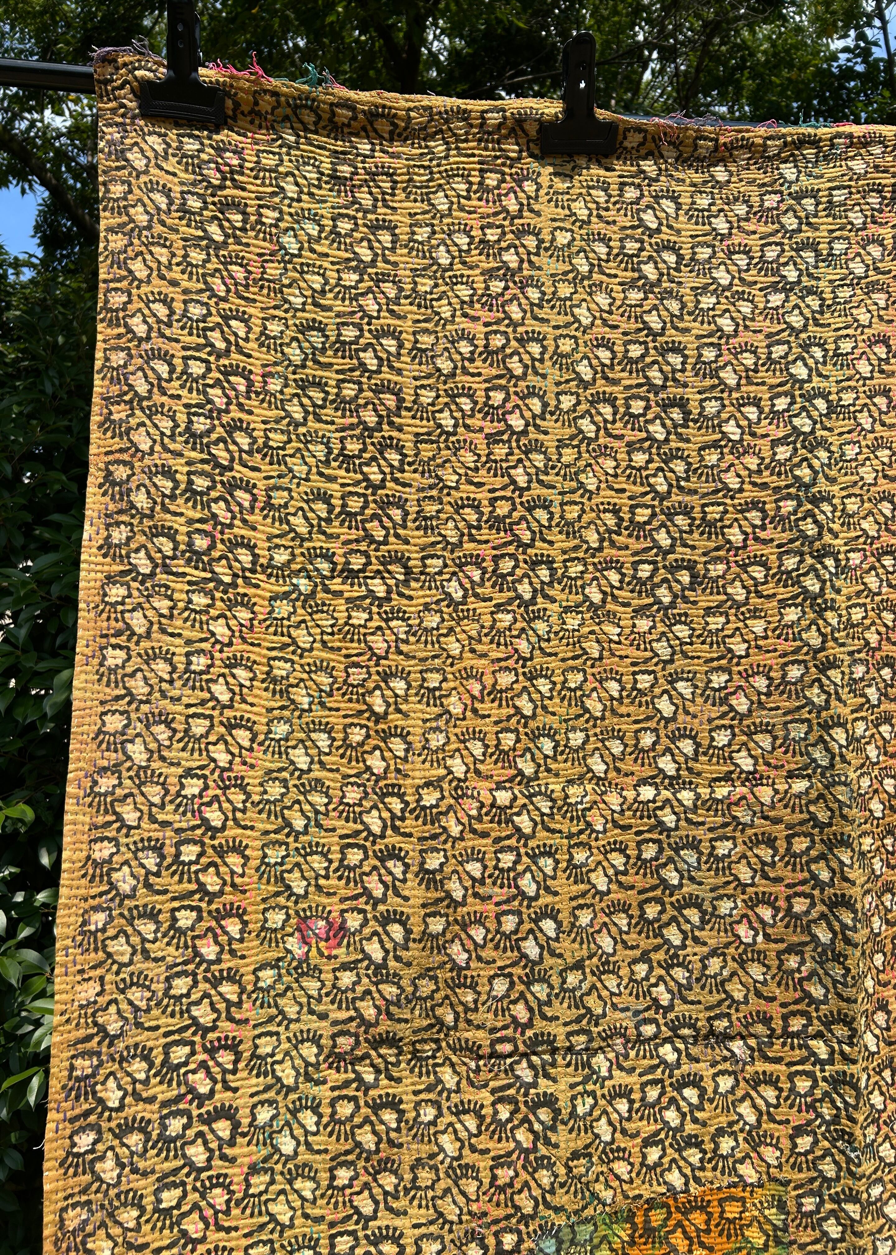 バグルーのハンドブロックプリントがベースになっているキルトはインドでも高価で貴重な1枚です。