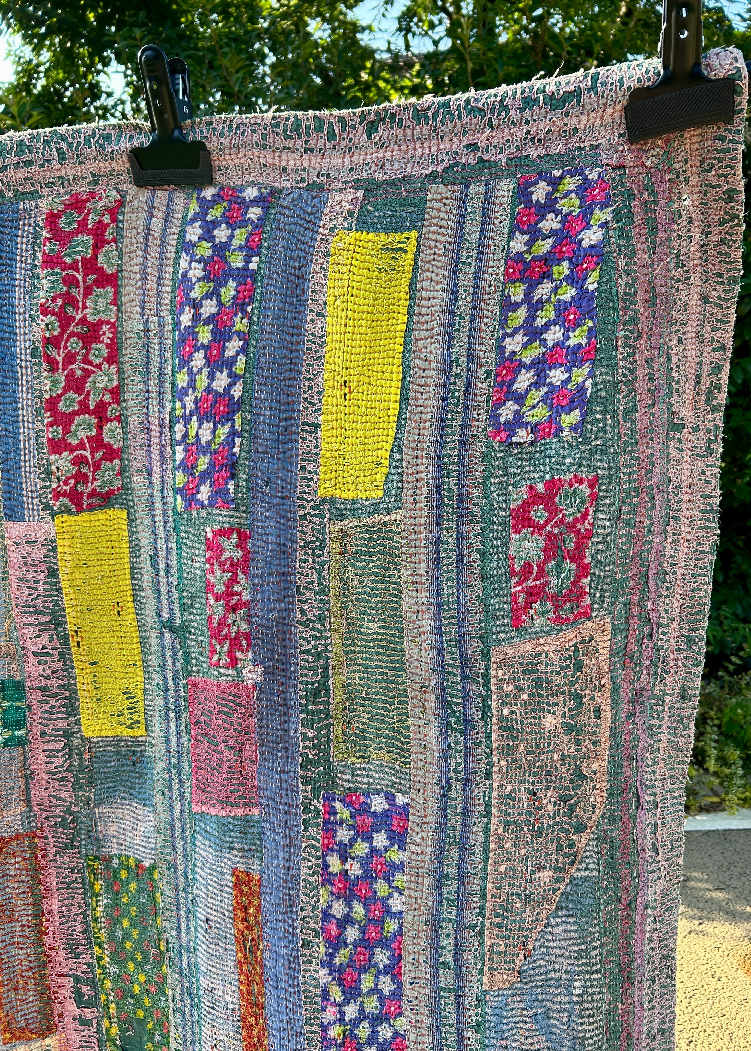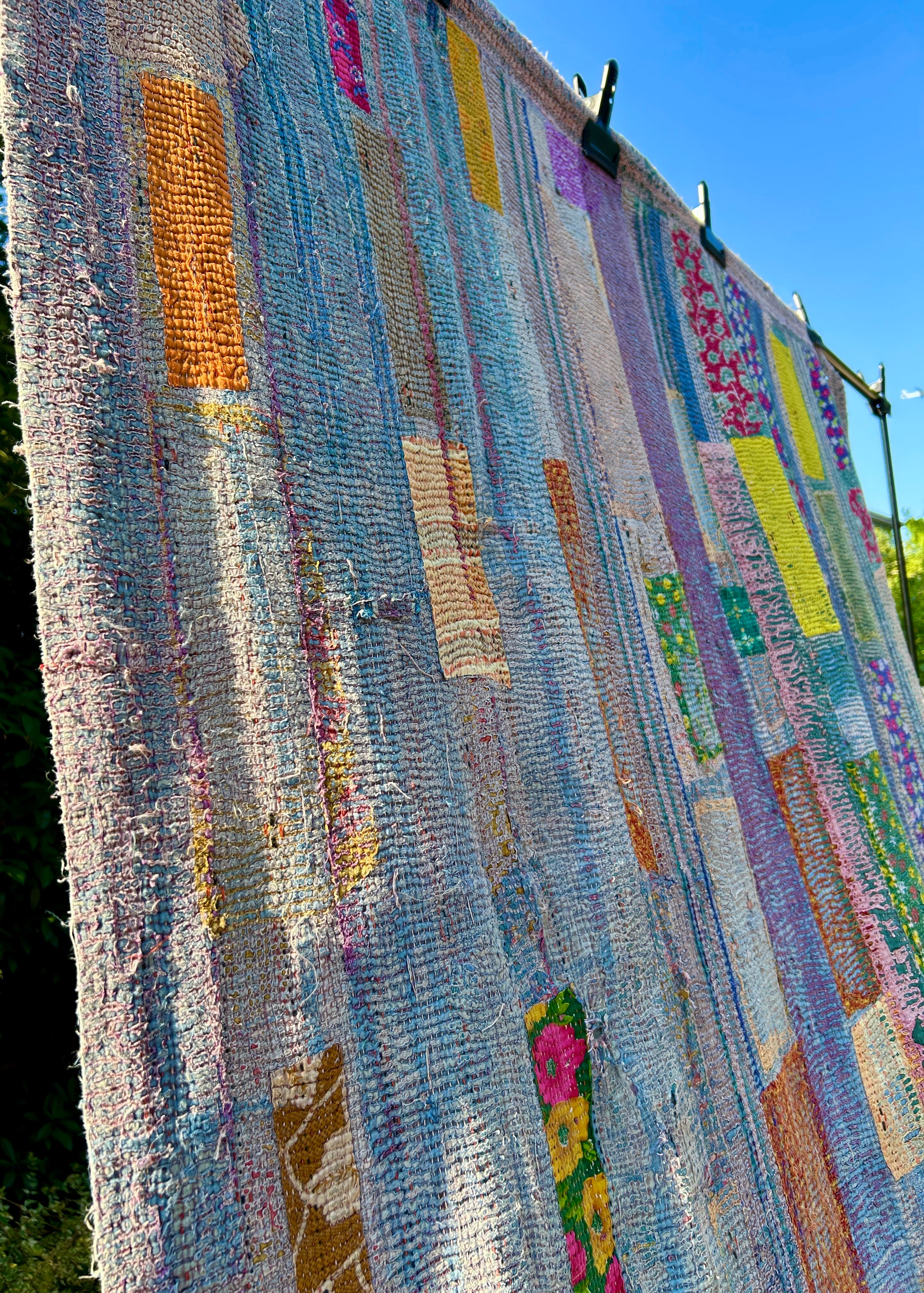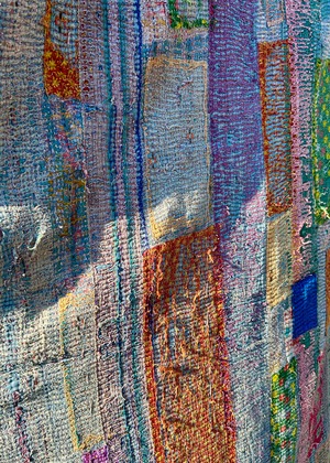 インドでは布を粗末にせず大切に扱う風習があり、使い古したサリーやドーティなど古布を捨てず再利用するために生まれた文化。