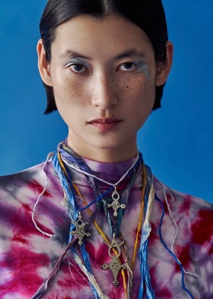 ベルベルの個性溢れるデザインに、ラベンダー色のシルクコードを合わせました。