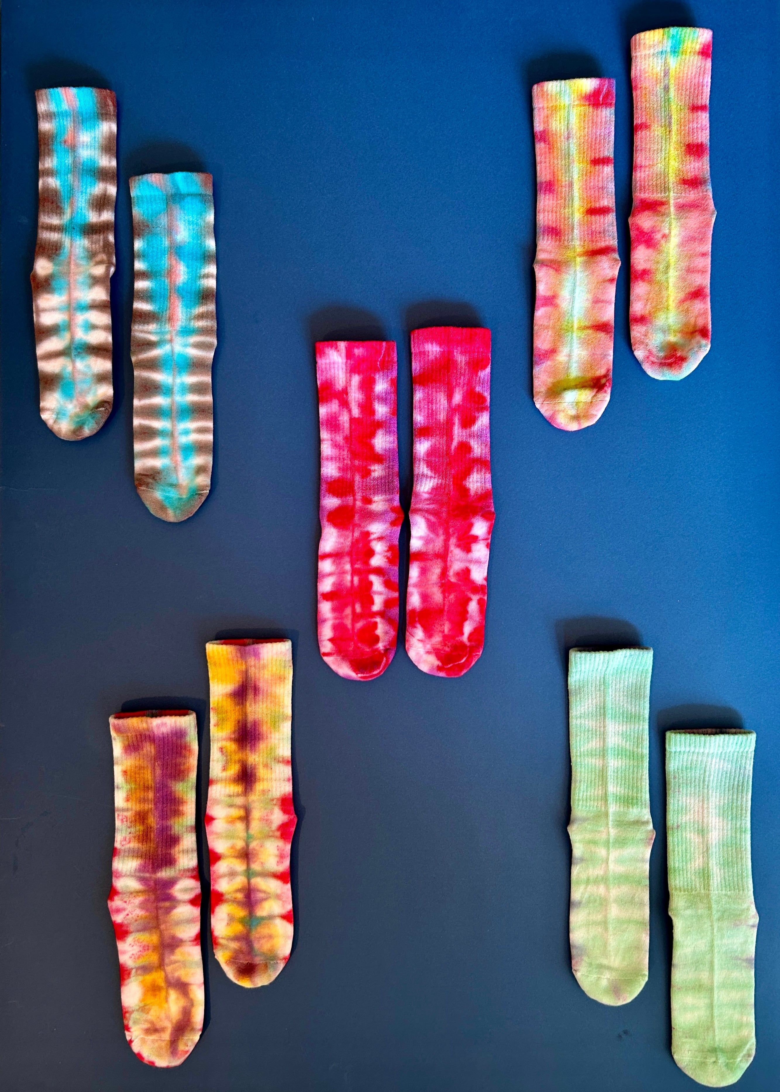 多様なカルチャーからインスパイアされた独自のタイダイ染め・絞り染め技法で1枚1枚手染めしました。