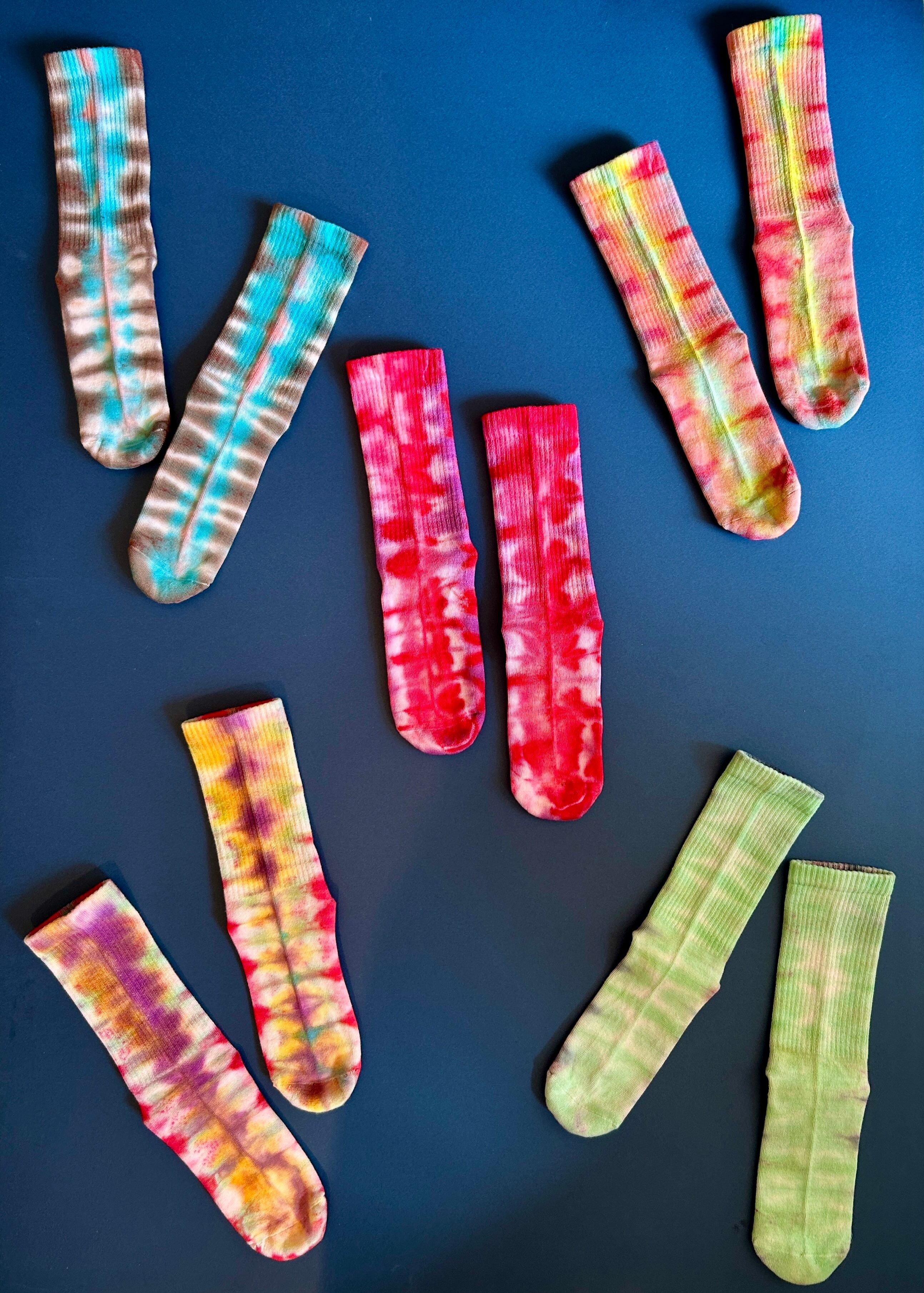 多様なカルチャーからインスパイアされた独自のタイダイ染め・絞り染め技法で1枚1枚手染めしました。