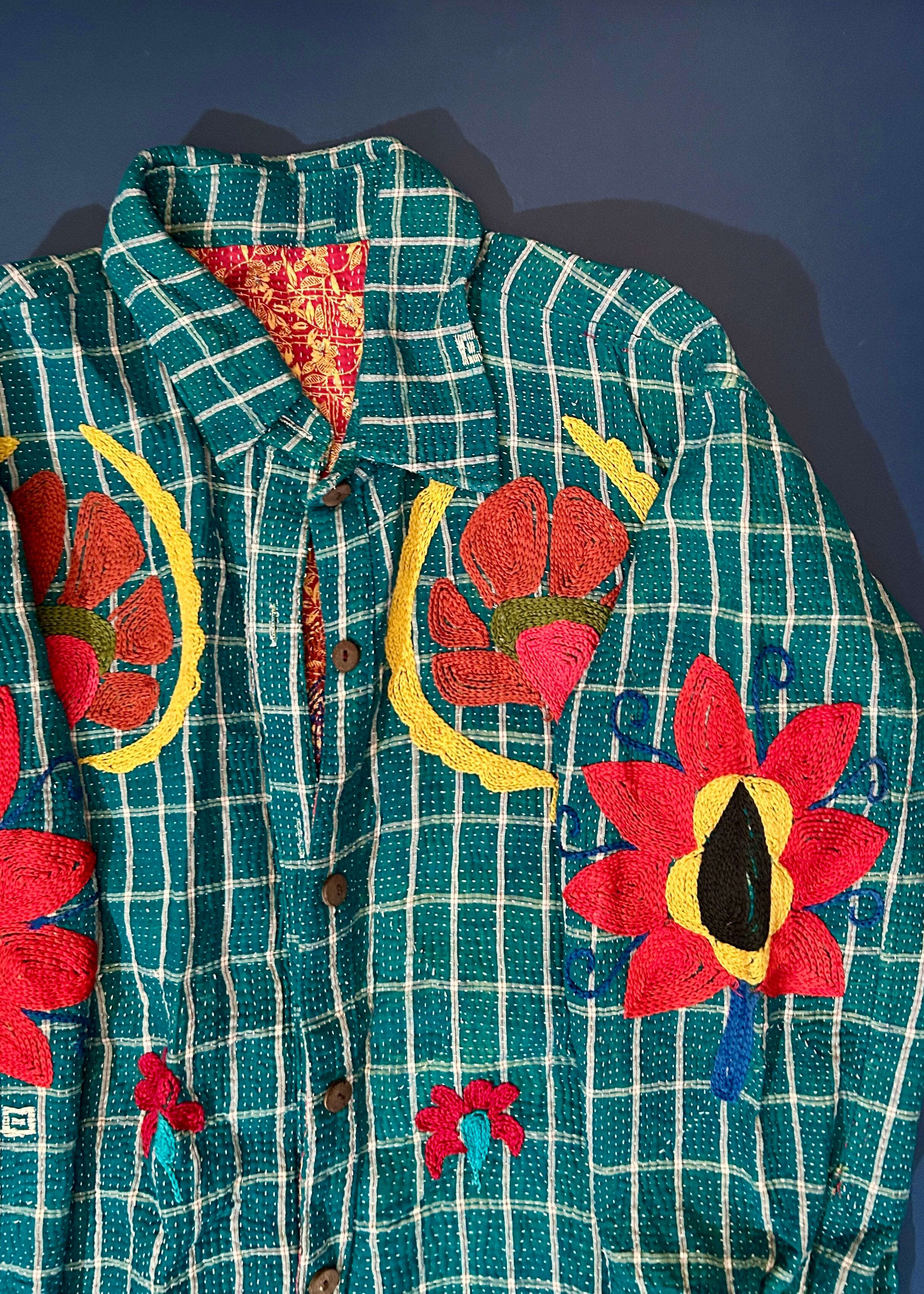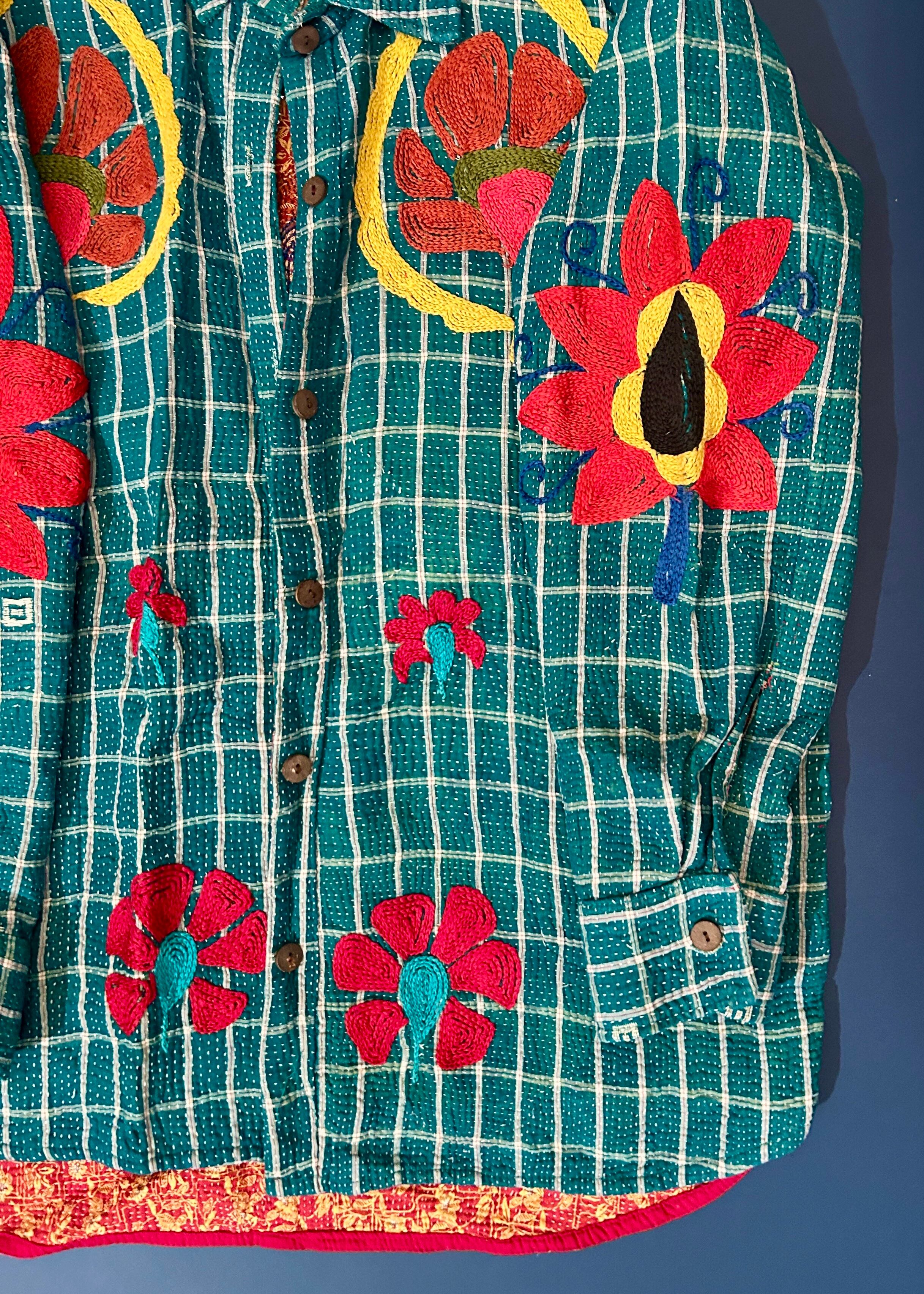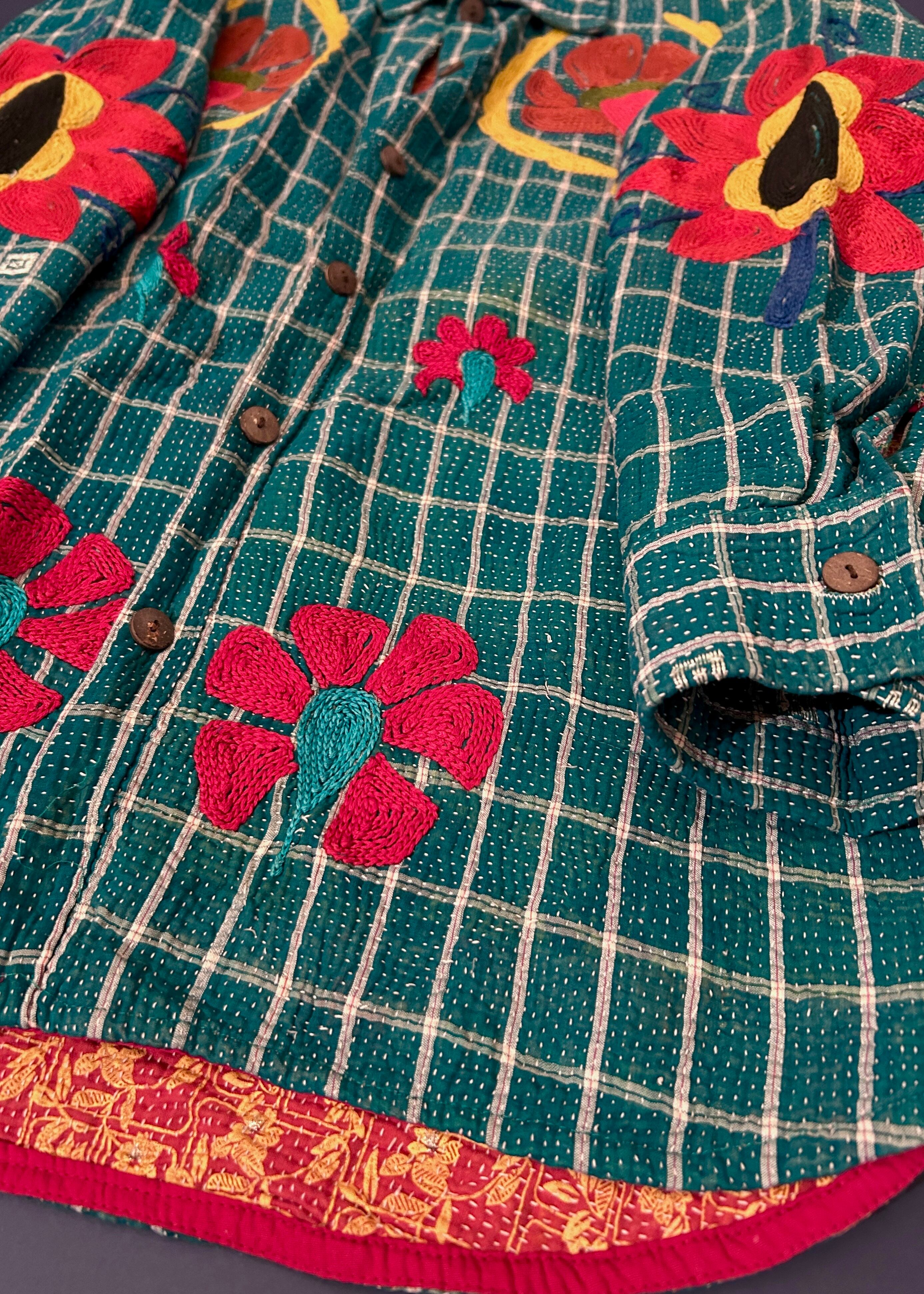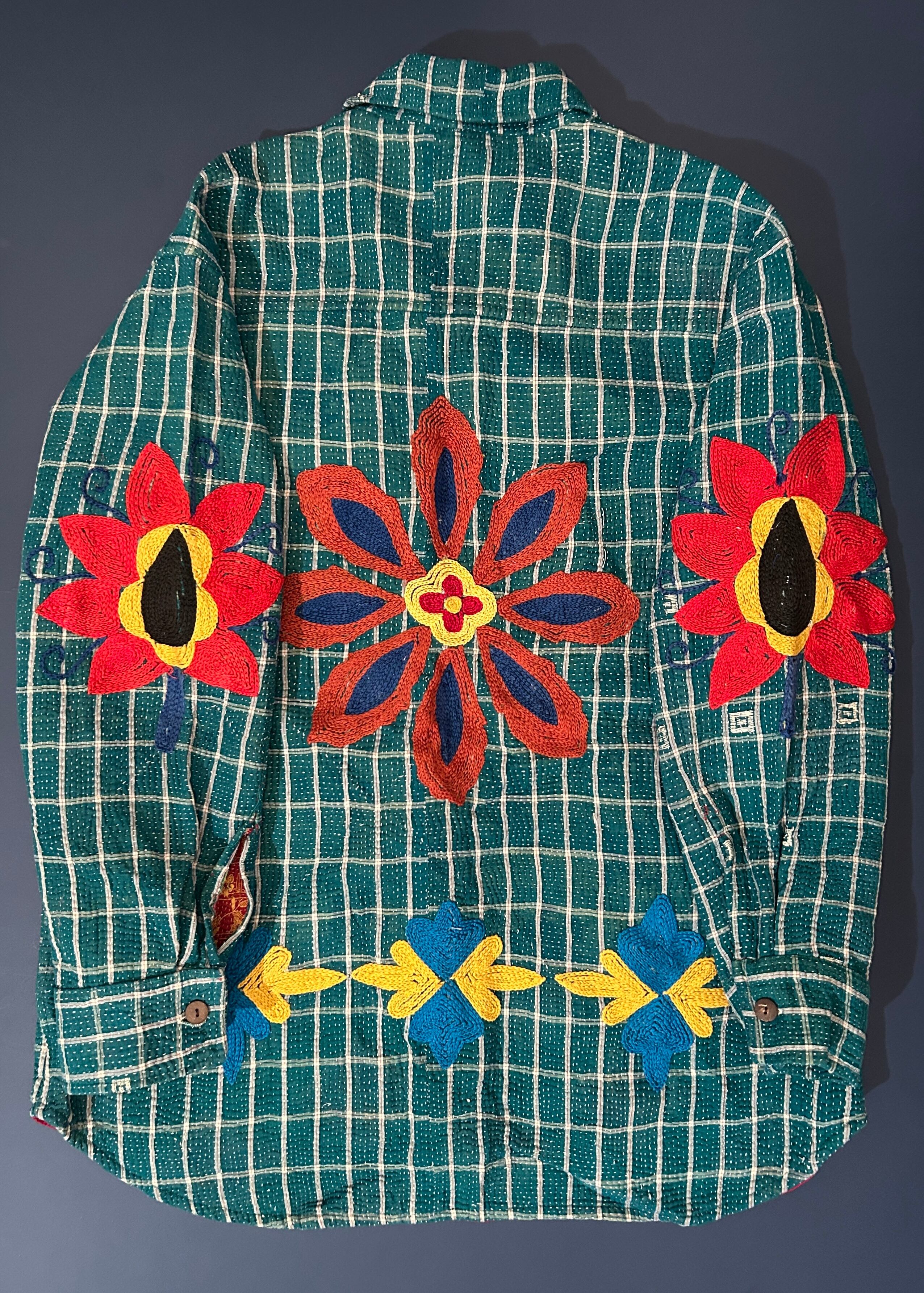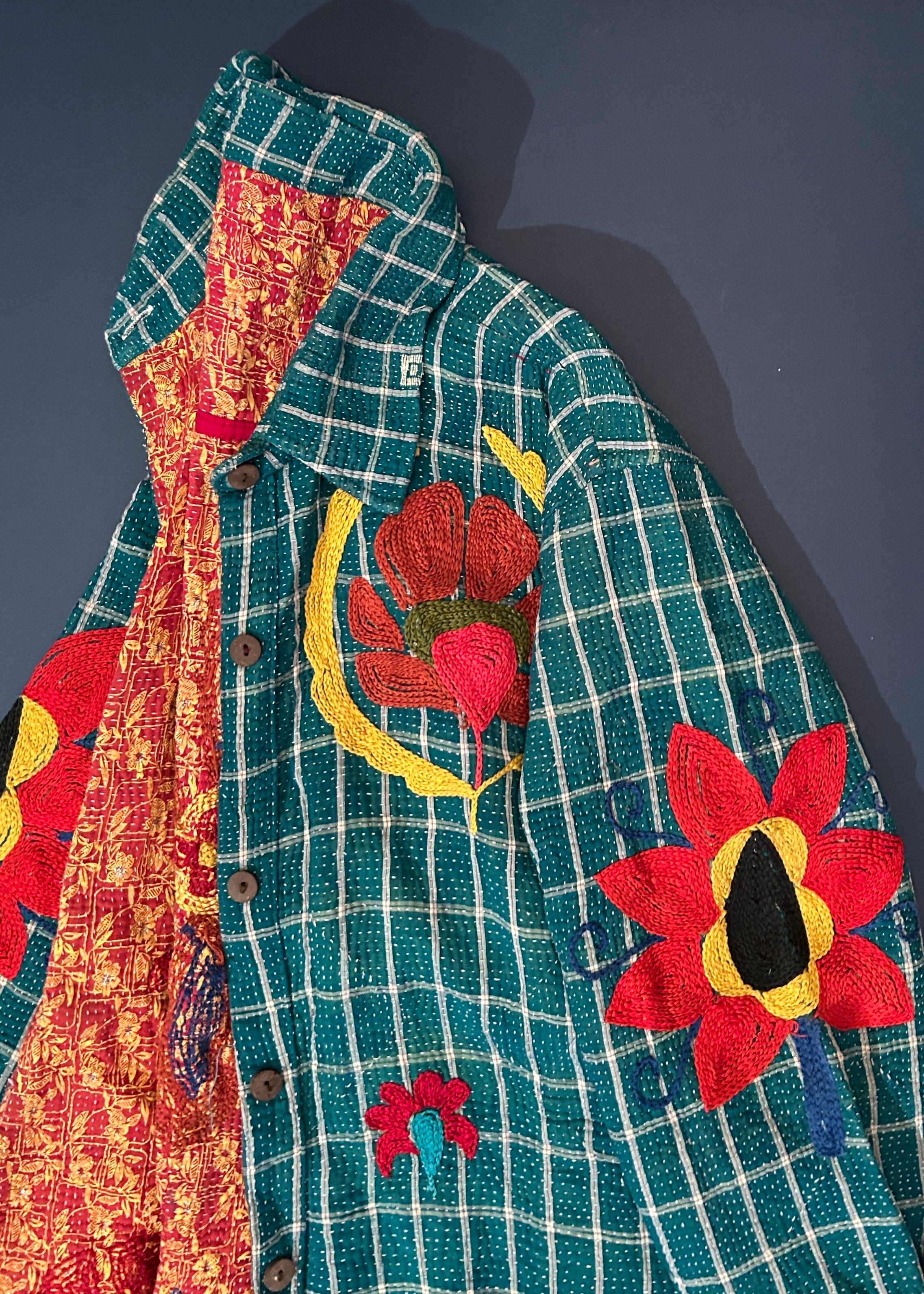 テキスタイル大国インド、ラジャスタン州のジャイプール。カンタキルトを数百枚と物色する中、一際目を惹いたのが、ヴィンテージのカンタキルトにカシミール刺繍(東アジアではアリ刺繍・スザニ刺繍とも呼ばれる)が施されたプロダクトです。