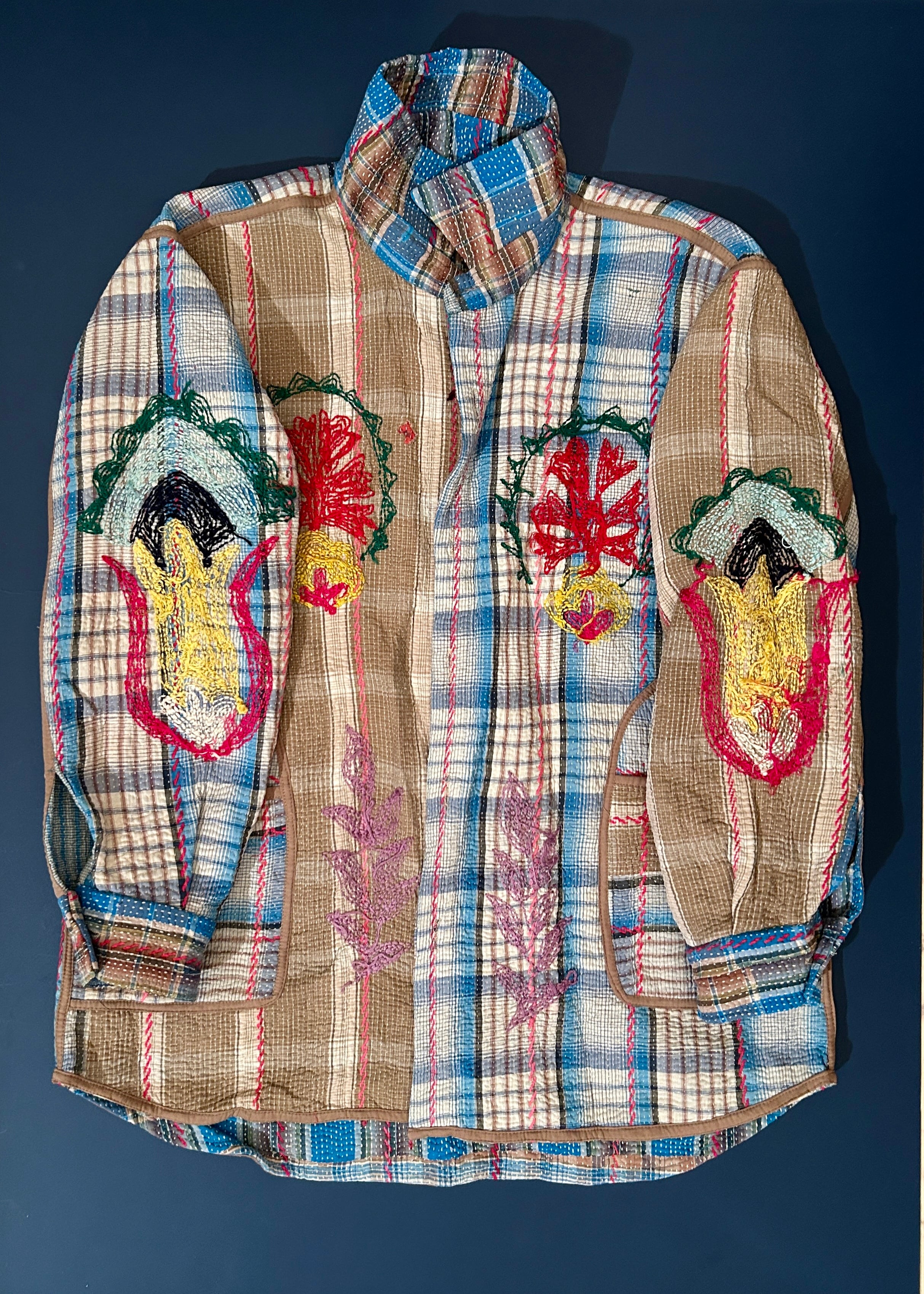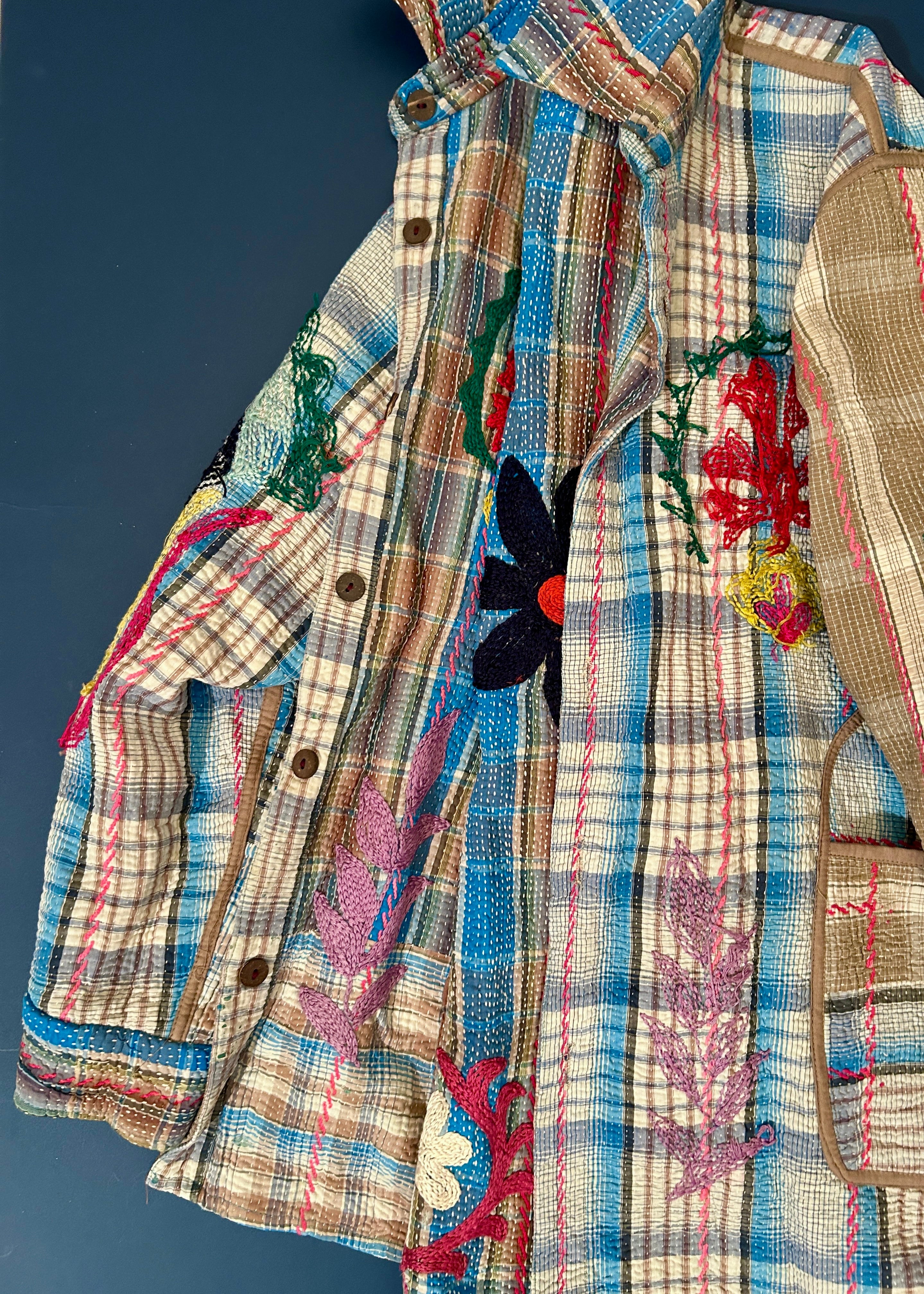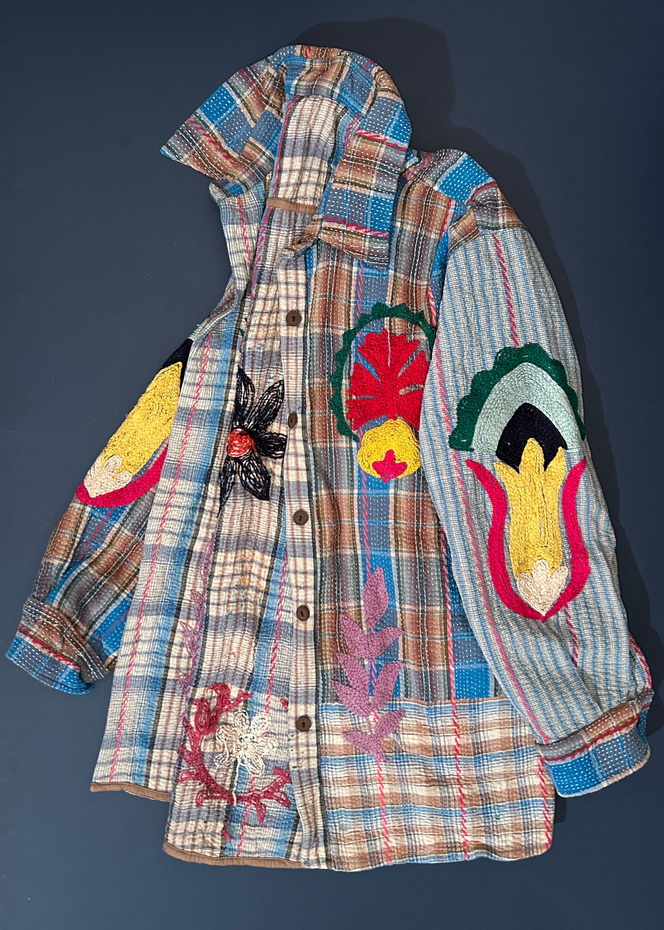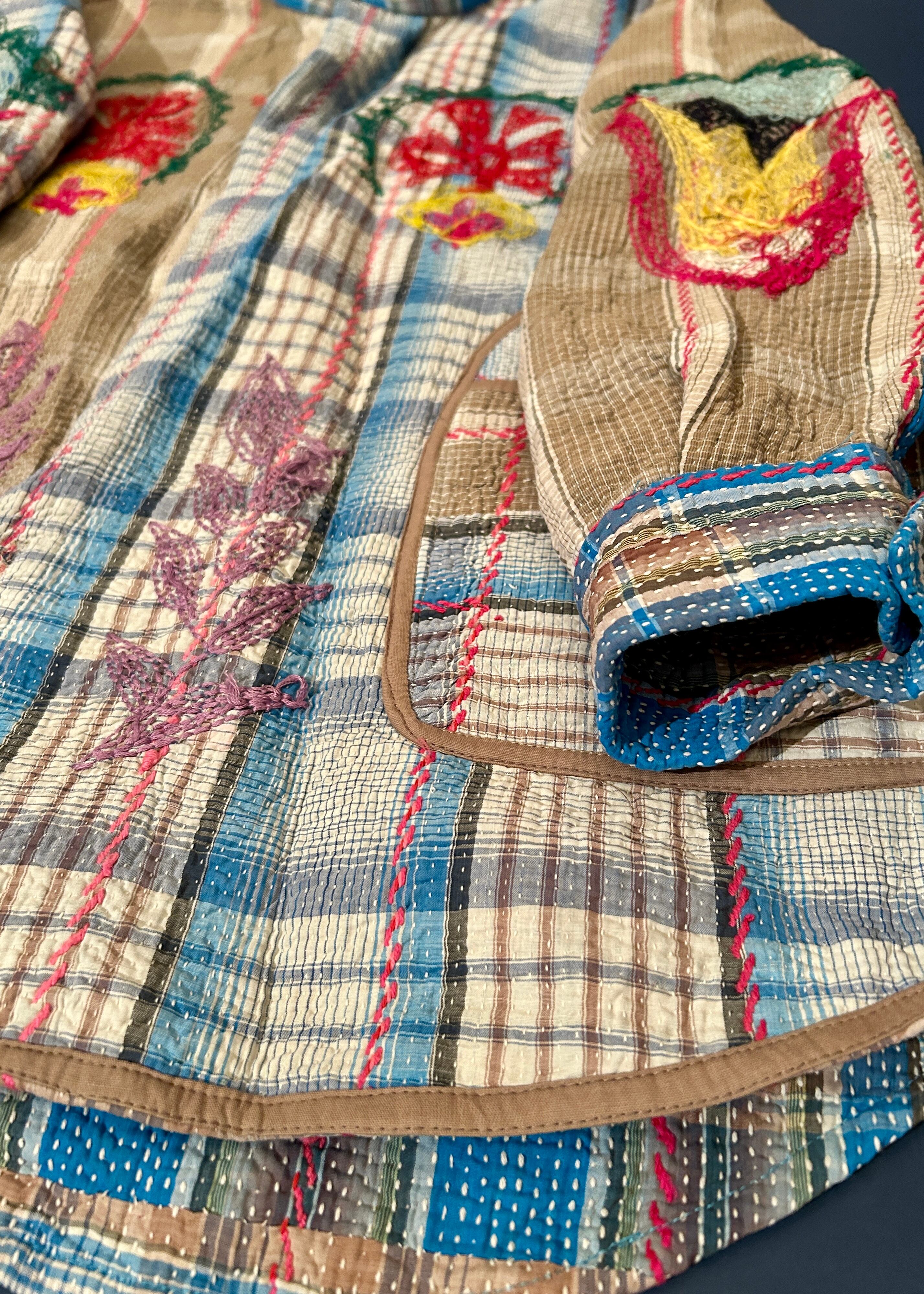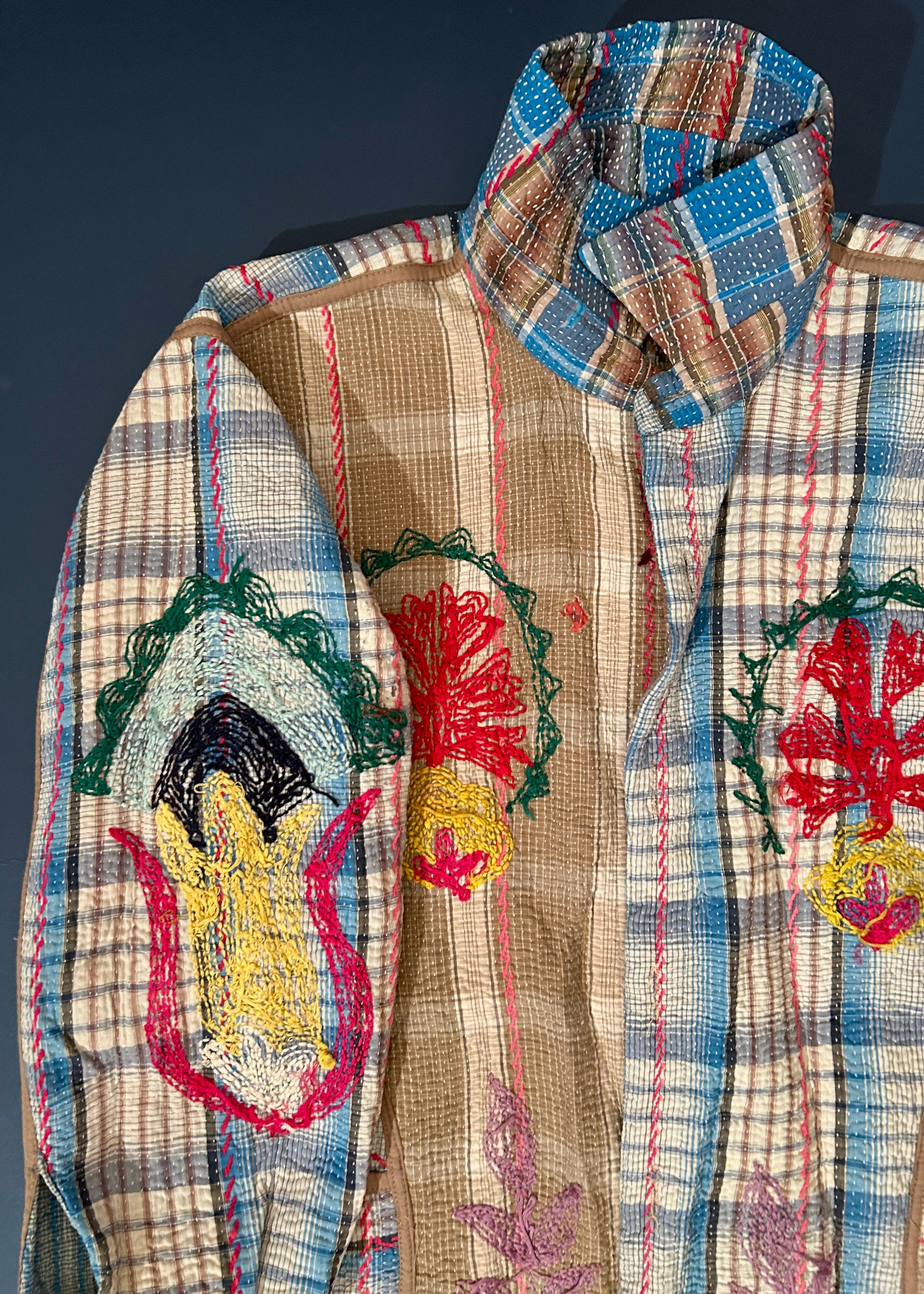 カンタキルトをより身近に纏えるようファッションに落とし込み、伝統とデザイン性を持ち合わせたリバーシブル仕様のジャケットへリメイクした一点物のプロダクト。