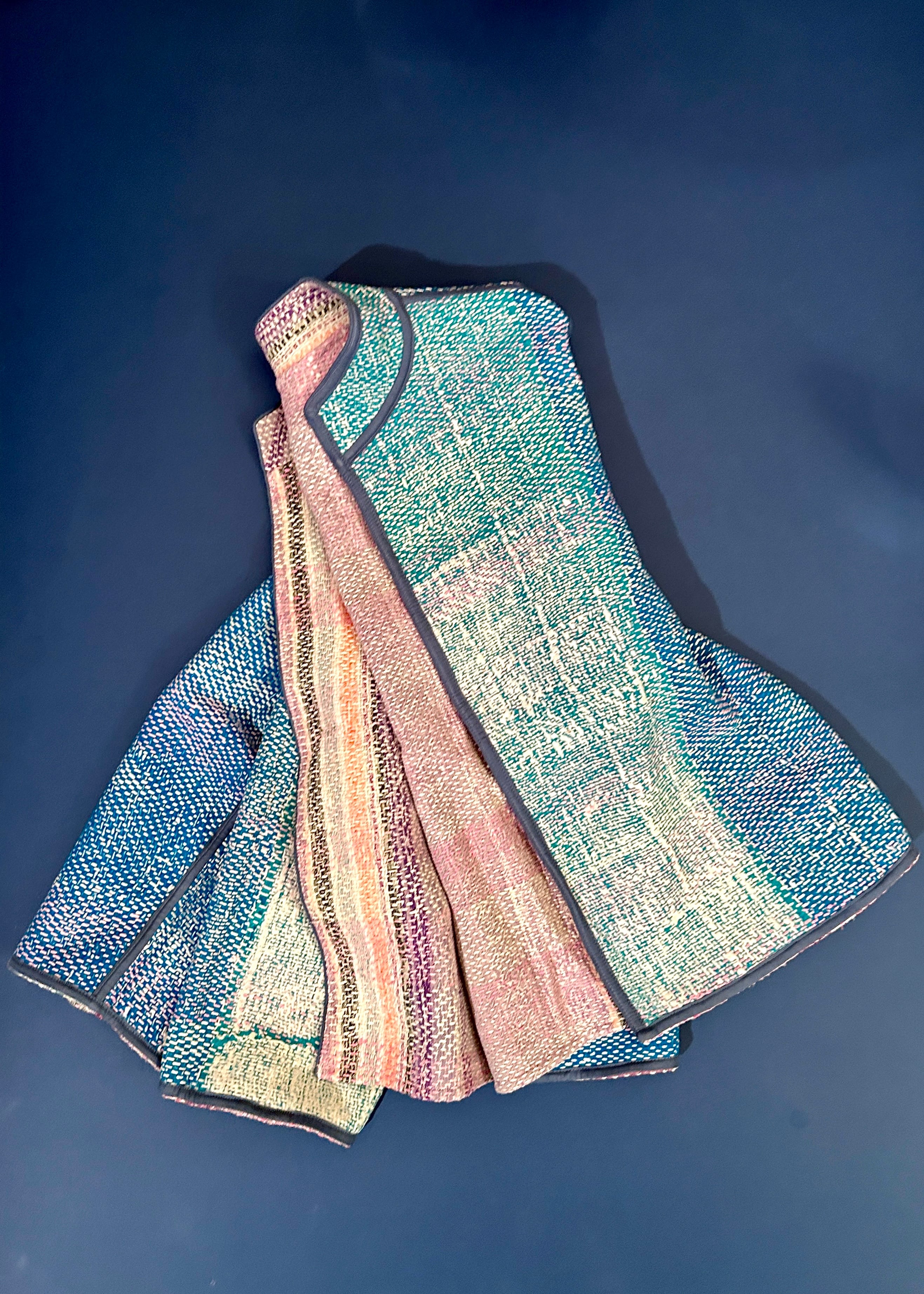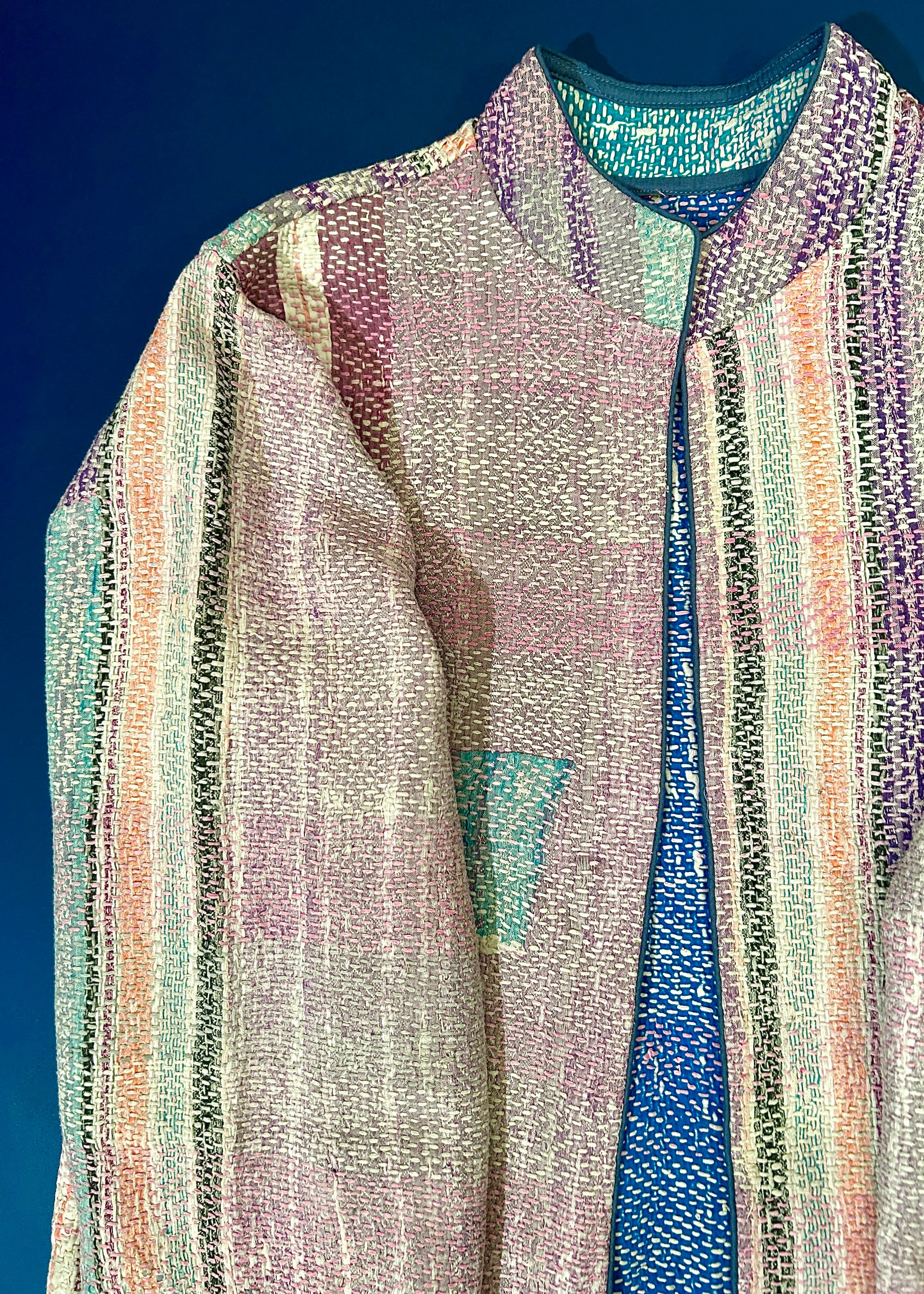 手仕事の伝統と現代的なファッションの融合を形にした世界に一枚だけのジャケットは、特別な存在感を放ちます。