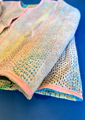 手仕事の伝統と現代的なファッションの融合を形にした世界に一枚だけのジャケットは、特別な存在感を放ちます。