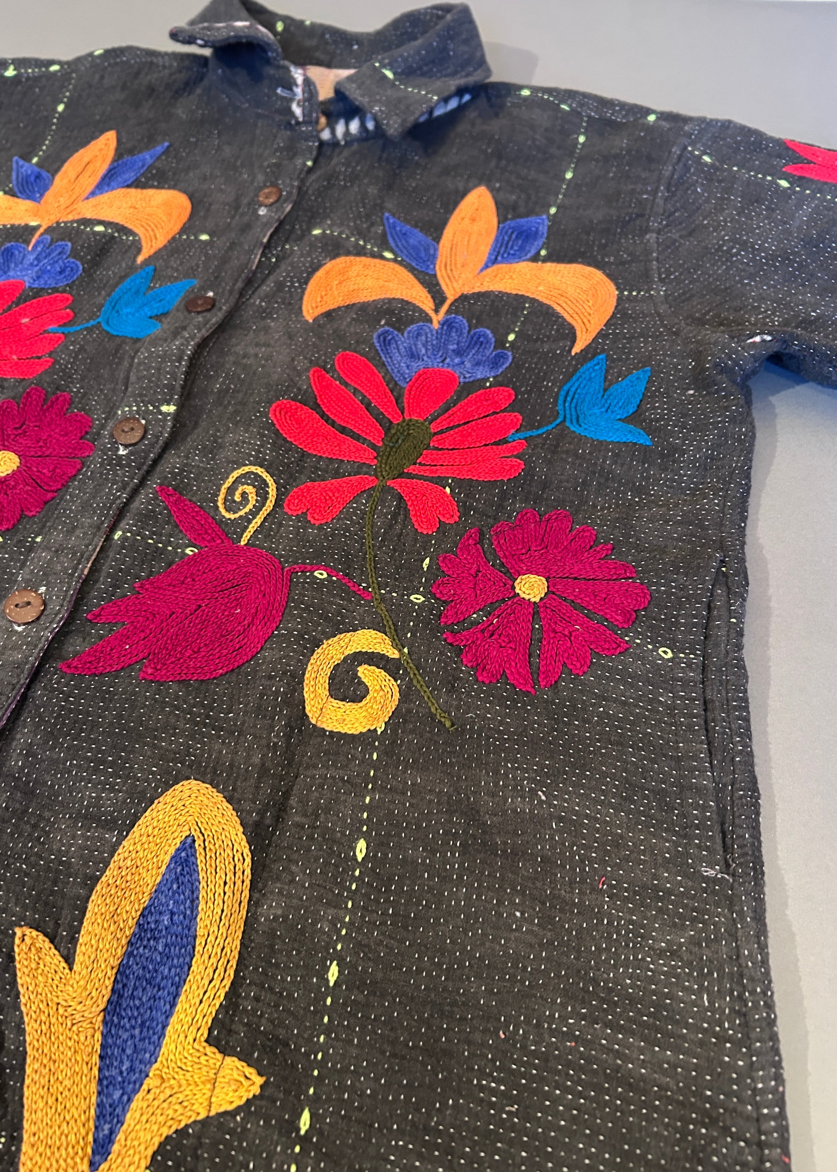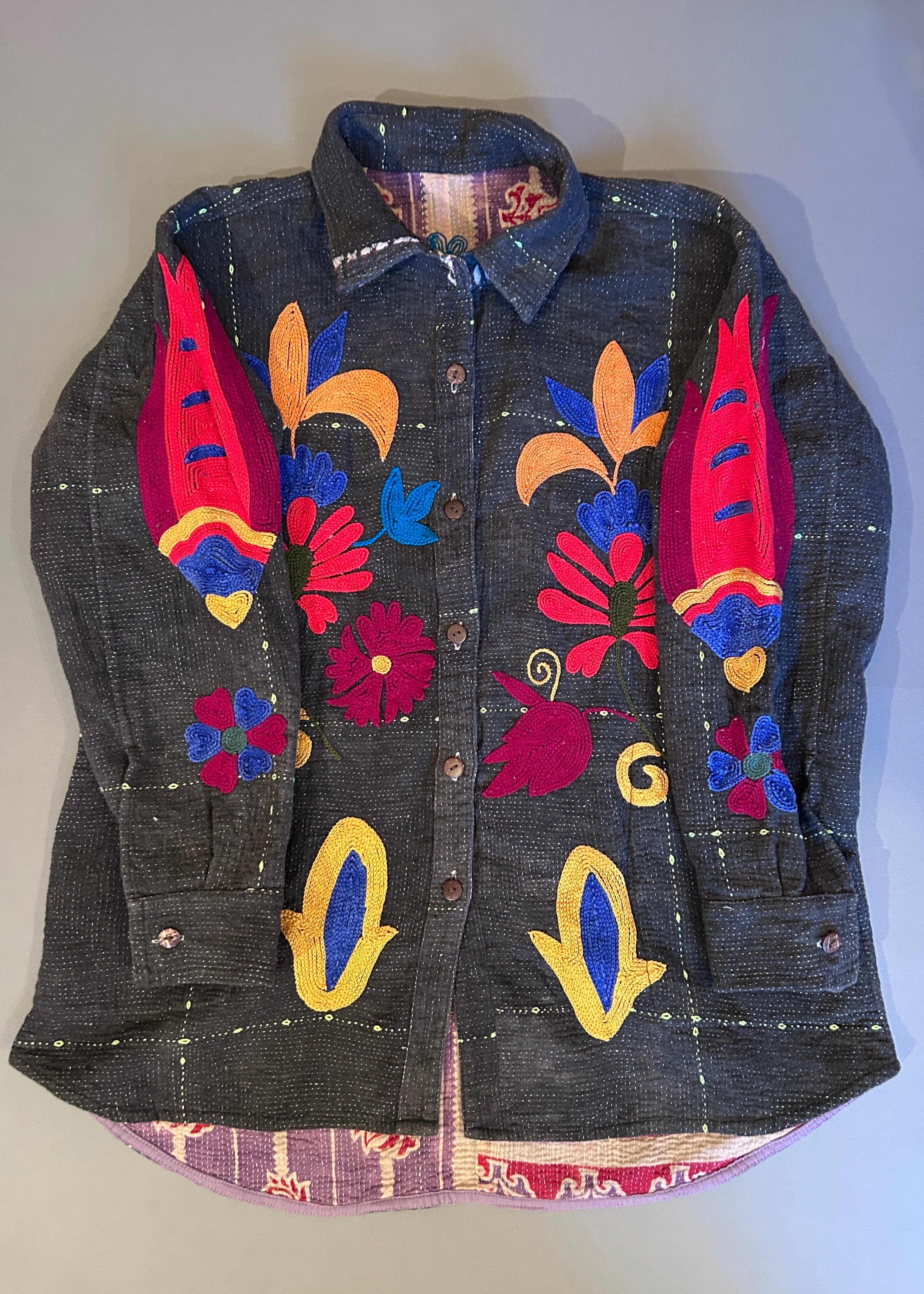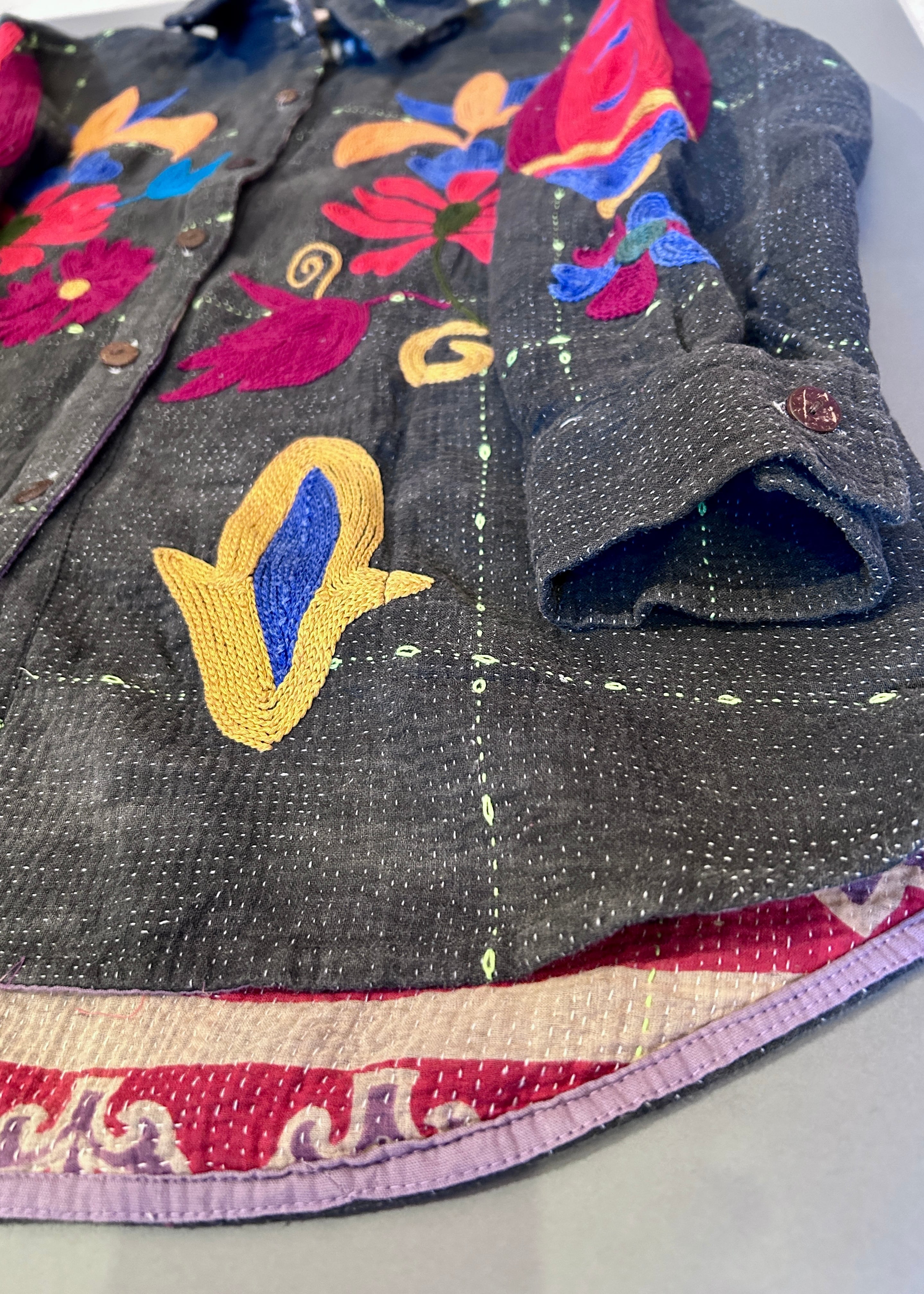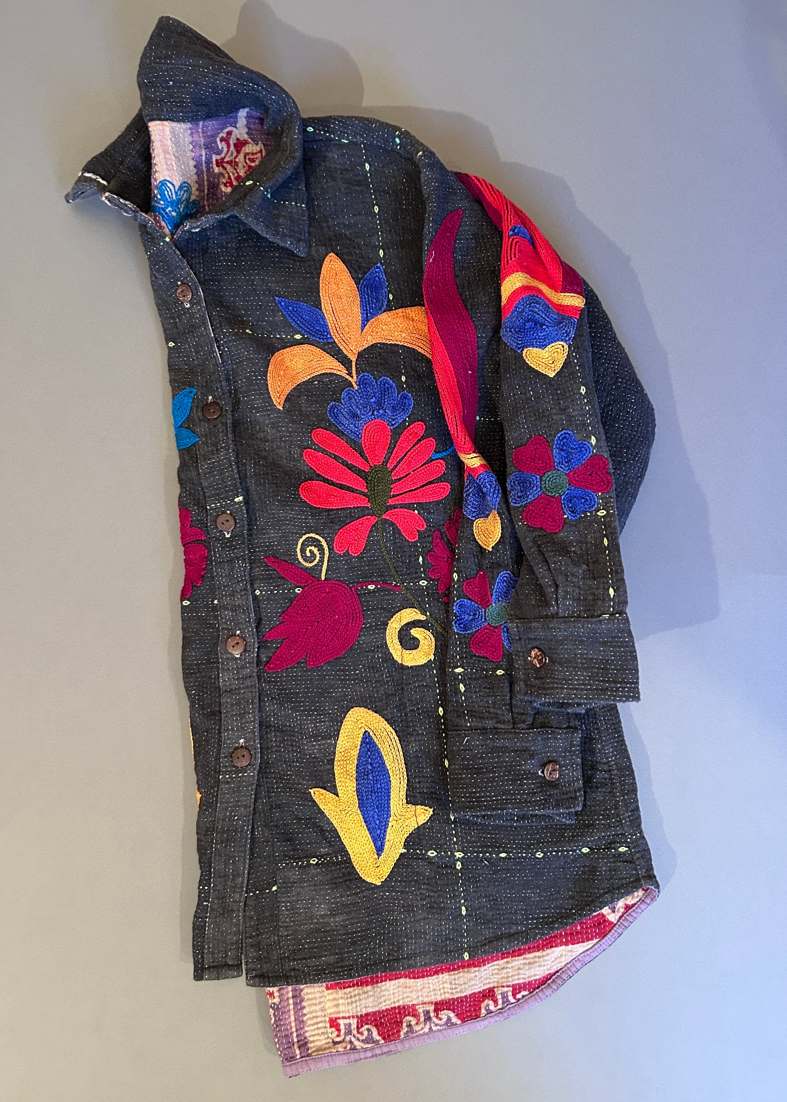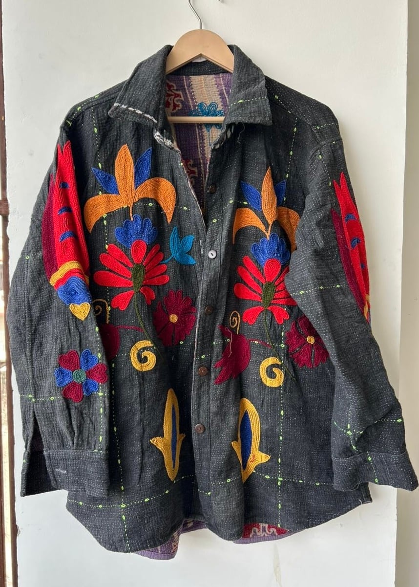 伝統的なカンタキルトを現代的なファッションに落とし込み、リバーシブル仕様のジャケットへリメイクした一点物のプロダクト。