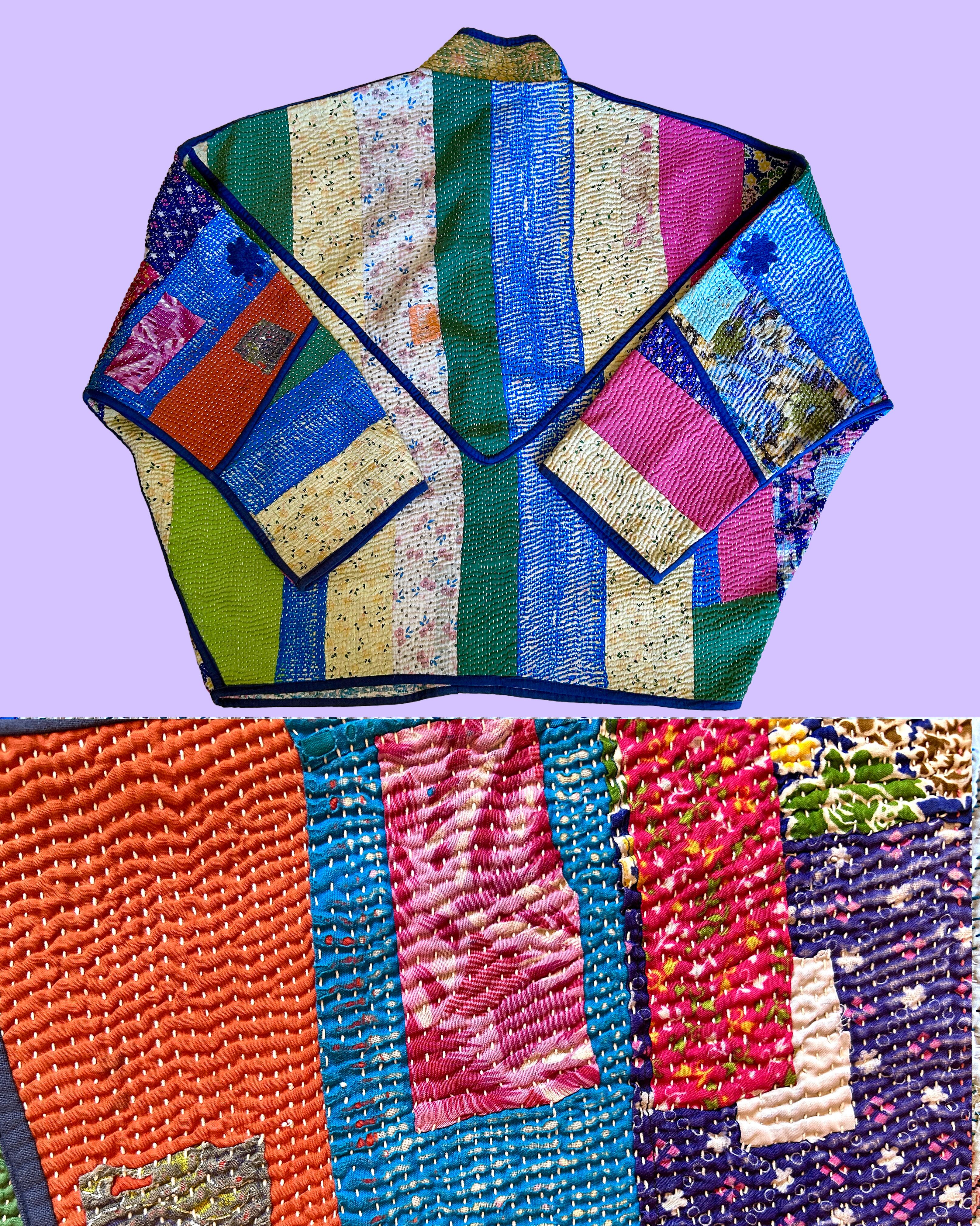 ヴィンテージのカンタキルトを現代的なファッションに落とし込み、伝統とデザイン性を持ち合わせたリバーシブル仕様のジャケットへアップサイクルした一点物のプロダクト。